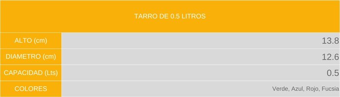 | Capacidad | 0.5 Litros, 1 litros |